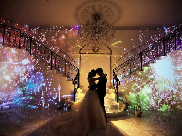 【演出人気NO.1】ゲストから歓声のあがるプロジェクションマッピング映像を体験!今までとは一味違う演出をしたい方必見!憧れの階段入場も体験出来て、結婚式のイメージもが湧きやすいと大好評!