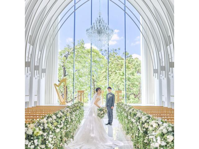 【昨年夏リニューアル完成!】天井高10mから降り注ぐ光・緑に包まれた新チャペルで感動的な挙式が叶う♪ムービー演出、大階段でのフラワーシャワーなど先輩花嫁から大人気の演出体験も!