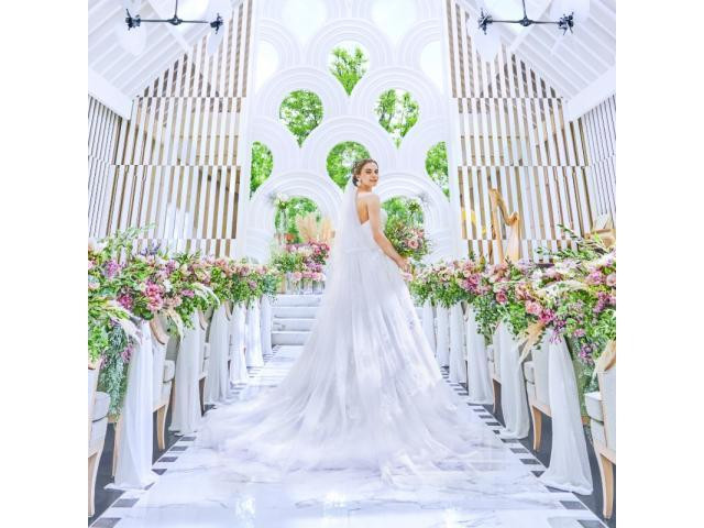 【緑と自然光溢れる純白チャペル!】◆天井高10m×バージンロード12m、圧倒的な開放感が魅力◆プランナーがおふたりの生い立ちをヒアリングして、心温まるオリジナルの挙式をご提案します。