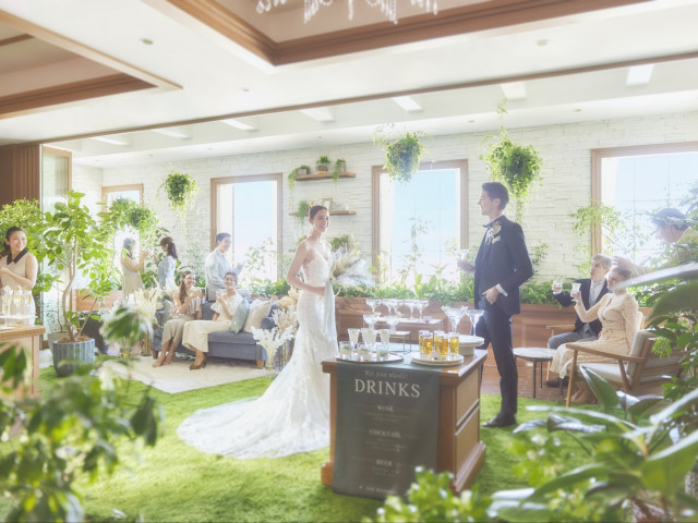 | おすすめ ポイント | 天候に左右されない緑あふれるインナーガーデン併設のパーティ会場と、オリジナルフォトブースを備えたパーティ会場の2種類から、好みに応じて選ぶことが可能