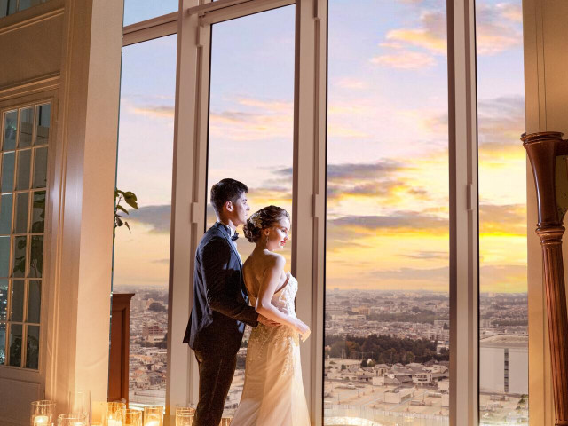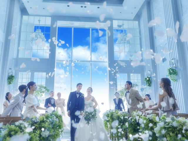地上100mからの圧巻の眺望、天井高7mの壮大なスケールが自慢のチャペル。ゲストの皆様の祝福に包まれる、思い出に残る挙式をプレゼント☆ 【165,000円相当】