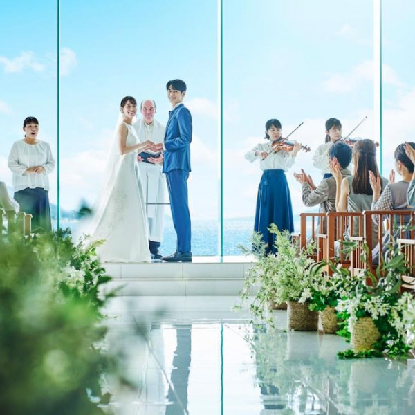 | おすすめ ポイント | 水平線へまっすぐ歩いていくようなバージンロードが美しいチャペル |
