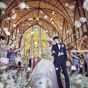 圧巻のステンドグラスがある会場。わたしは披露宴会場が好み