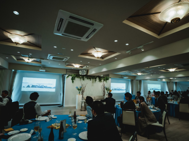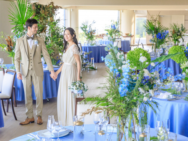 【絶景ロケーション会場見学】三河湾を180度のパノラマビューで見渡すことができるパーティ会場もこの度一新!ナチュラルな雰囲気の会場はどんなコーディネートもピッタリ。最大100名まで入る会場を広々と使って!