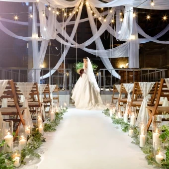 ライトアップされた赤レンガ倉庫を背景に、映画のワンシーンのようなひとときを過ごしていただけるナイトウエディングもおすすめ。