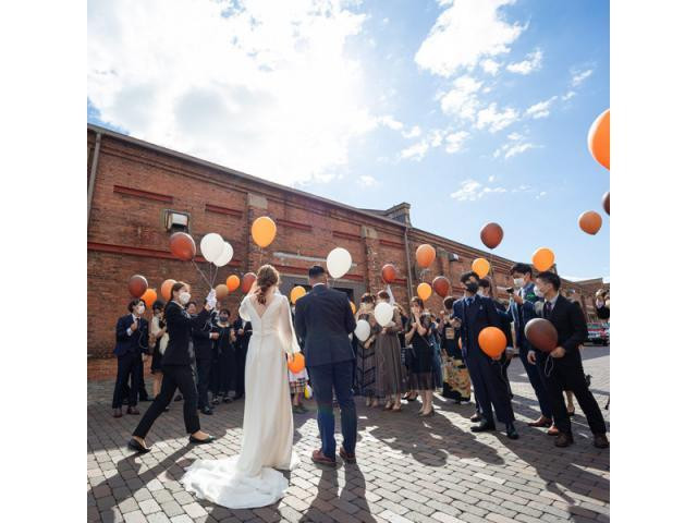 | ガーデン演出 | 有り赤レンガや青空をバックにフラワーシャワーやブーケトス、バルーンリリースなどアフターセレモニーをゲストのみなさまとお楽しみいただけます。 またメインストリートなど青空の下での挙式も可能です。 |
