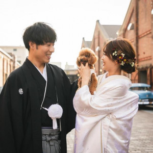 アカレンガとクラシックカーが織り成す空間は和装にもピッタリ♡