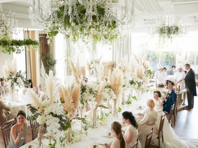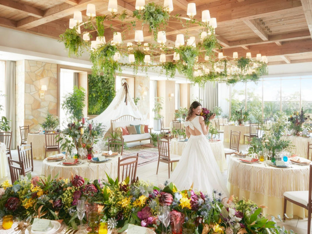 自然光がたっぷり降り注ぐ空間をまるごと貸切にできて、コーディネートも自由度が高いのが魅力!本番さながらの会場でおふたりをお出迎え♪