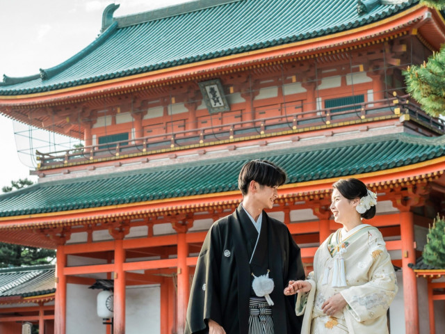 |平安神宮ならではのフォトスポットをご紹介|国の名勝にも指定されている10,000万坪の日本庭園「神苑」をじっくりご案内!京都らしさと非日常を存分に感じていただける最高のロケーションで感動をゲストに。