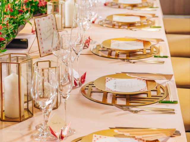 和食とフレンチが融合した、平安神宮会館でしか召し上がる事のできない特別なお料理をご用意。お箸で召し上がっていただけるので老若男女問わず安心。思い出の一皿の再現や地元食材を使ったオリジナルメニューも可能