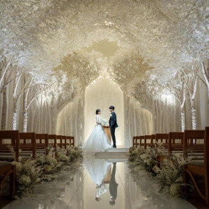 元々真っ白な白樺のチャペルが気に入って下見させていただいたのですが、照明を変えたバージョンも見せていただき、そちらもとても素敵でした。新郎新婦の立つところが一段高くなっていることと、参列者席が中央を向く形で並べられていたので、全員が新郎新婦の姿を見やすいという点がいいなと思いました。キッチンが披露宴会場と直結しており、キッチンからお料理のいい匂いがするというのが、個人的にはあまり見たことがないスタイルだったのでいいなと思いました。何にいくらかかるのかを出してくださっていたので納得感があり、持ち込みすることで節約できる部分の説明もきちんとしていただいたので安心できました。久屋大通駅から徒歩で伺いましたが、少し距離があるなという印象でした。車で伺う場合は、コインパーキングになるとのことでしたが、パーキング自体は周辺にたくさんあったので停めるのには困らないと思います。施設内の見学する中で、例えばこういう演出をするのはどうですか?とたくさん提案してくださったのがとてもよかったです。自分たちがトリフォーリアさんで式を挙げるイメージがとても湧きました。参列者の印象に残るチャペル披露宴会場の雰囲気や料理は正直どの会場さんでも似たり寄ったりになってしまうので、チャペルが素敵なところで挙げたいというこだわりがありました。照明でチャペル内の雰囲気を変えられたり、座席が中央に向いていて参列者が新郎新婦の姿を見やすいという、トリフォーリアさんのチャペルへのこだわりが私たちに刺さりました!大聖堂でお姫様のような結婚式をするのは嫌で、シンプルさを求めている、でもシンプルすぎて地味になるのは嫌、という方におすすめなチャペルと思います。詳細を見る (714文字)