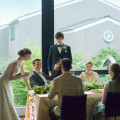 平日の結婚式の一番の魅力はおふたりとゲストだけの空間が作れること。天井高13mの開放的な独立型教会、都心とは思えない緑溢れるオープンエアなガーデンでゲストと特別な一日を過ごして。