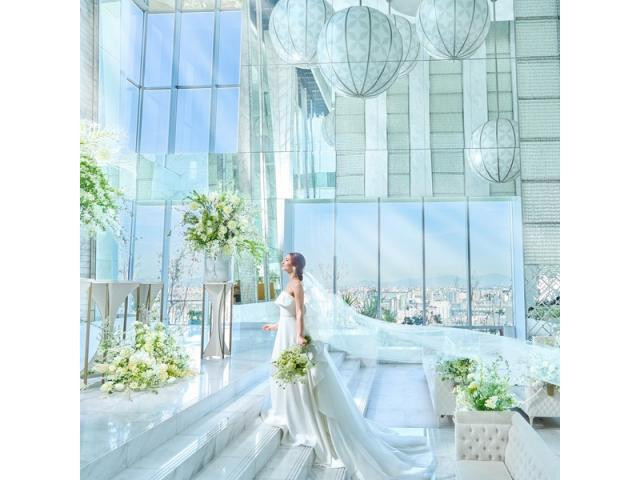教会のコンセプト「空の旅」をイメージしたフェアでは、料理ランクアップやドレス30万円分の特典など!その他多数の限定特典もお楽しみに♪