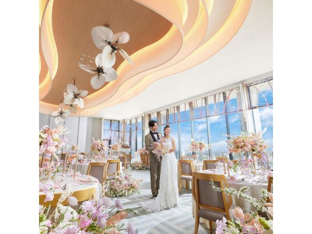 【ワンガン】【ワンス】【ワンダー】というテイストの異なる3つの会場で、おふたりにぴったりなコーディネートをご提案させていただきます!どの会場も自然光が差し込むスカイビューの眺望で開放感抜群です!