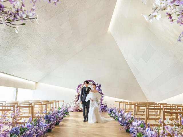 【世界的に有名な建築家「隈研吾氏」×選べる2つの会場】木材のぬくもりを活かした建築面での美しさも感じていただける結婚式場。シンプルなスタイルも、華やかなスタイルも似合う2つの会場をご用意しております。
