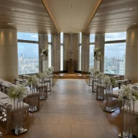 当ホテルのチャペル『SONOR』は全館リニューアルの際に新しく創られ、地上110mからの東京の絶景と豊かな自然光溢れる空間となっております。