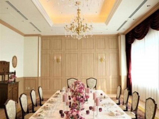 少人数での食事会にピッタリの専用会場は会場内に絵画や重厚感のあるアンティークのインテリアなど上質で格調高い空間。大きな窓から自然光が注ぎ親しいゲストと和やかな時間を過ごせる!