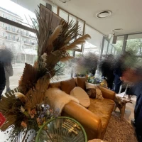 最近流行りのたくさんの小瓶にお花が1輪2輪で可愛く飾られている感じ♪