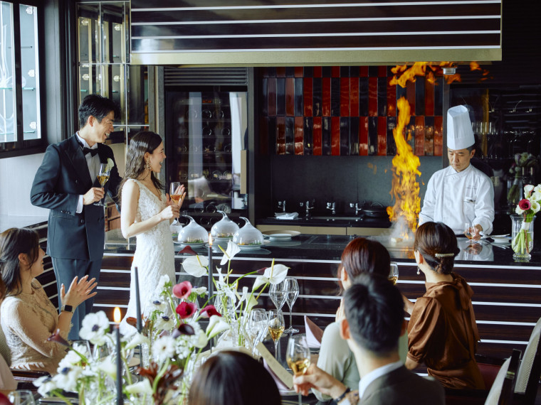 | おすすめポイント | 会場内ショーキッチンでのシェフによる迫力のライブパフォーマンスにおふたりもゲストも感動!お料理はシェアスタイル、フルコーススタイルが自由にお選びいただけます。