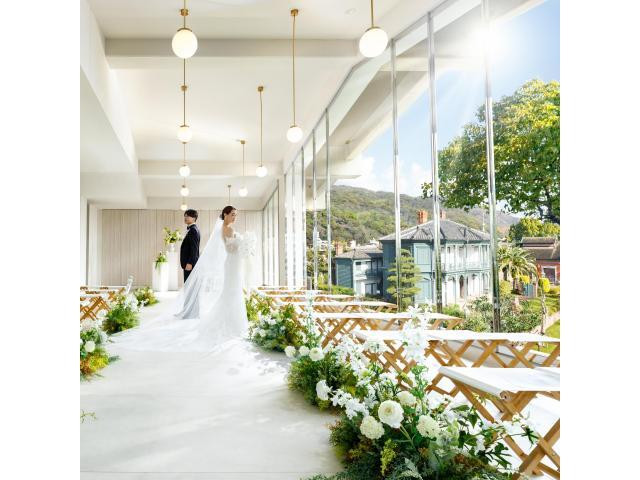 | おすすめ ポイント | 選べる2つのチャペル。風と光を感じ自然に囲まれたテラスウェディングの「ヤグラテラス」と、異国情緒漂う異人館を望む「ハッサムスイート」は、どちらのチャペルもふたりの誓いのシーンを印象的に美しく彩ります。 |