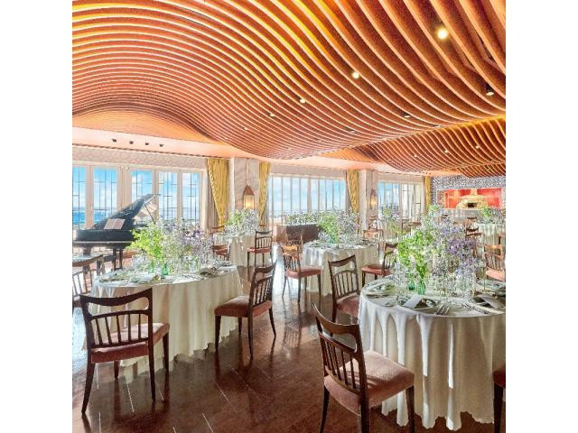 【海の見えるパーティ会場&オープンキッチンつき:最小6名~】海側が大きな窓になっていて開放感あふれる空間が人気♪テラスからの入場やフォトタイム等、ゲストと和やかな時間を過ごせる演出をご提案します!