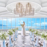 おすすめ ポイント | ★オーシャンビューならでは★背景に大きな海が広がり、光も差し込み煌びやかな雰囲気♪花嫁姿もより一層美しく輝く。リゾート風ウェディングが出来るこの場所だから叶う☆彡洗練されたセレモニー |