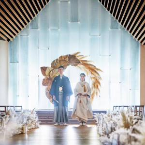 木目の天井と和紙を使ったガラスがとても印象的で、雑誌で見ていた時は、天井が低いのかなと感じたが、実際に見学すると圧迫感を感じなかった。また、ベンチではなく独立した椅子になっていて、車椅子での参列者には、とても良い。モダンな雰囲気で、高級感あり。挙式会場とまた違った雰囲気を楽しめる!駅から直結であり、駐車場もあるため来ていただく方々には、とても良い環境だと思います。挙式会場の椅子が独立していて、椅子を車椅子に変えることができたり、各階に優先トイレや授乳室があり、トイレ前にスロープがあったりと、バリアフリーの環境がしっかり整っているので安心できた。自分たちの思い描く結婚式になるかというのも大切ですが、参列者の方々に気持ちよく過ごしていただける環境であるかどうかの確認が大切だと思います!詳細を見る (345文字)