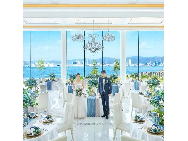 【唯一無二のロケーション】リゾートのような非現実的空間で憧れの結婚式が叶う♪チャペル、披露宴会場から見える神戸の海・空・街をバックに前撮りや写真撮影が出来るので、新郎新婦様はじめゲストの方にも大好評!