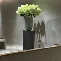 美術館のようなシンプルでスタイリッシュな雰囲気で、ゲストや新郎新婦の表情が引立つ空間。また、挙式会場の中心には美しい季節の植物があしらわれている。