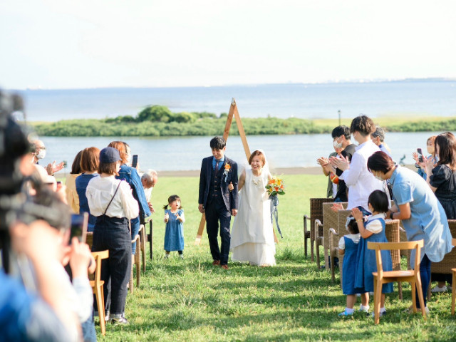 ''見るだけでOK''カジュアル体験!実際の挙式・パーティ―が見学できる人気フェア 本番の雰囲気やイマドキ演出を見れるから、当日のイメージがつかめて安心 リアル新郎新婦&ゲストの様子を実際に見て聞いて、楽しいアウトドアウエディングを体感!