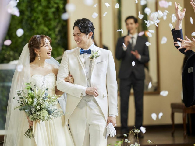 【白いドレスと相性抜群】◆ドレスショップ監修のチャペルは花嫁の白がキレイに映える緑でデザイン◆全天候型のチャペルは挙式開始の時間に一番自然光が入る仕様 ◆教会式・人前式・神前式も可能