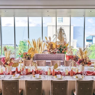 挙式会場は緑を取り入れた、明るい印象で、バージンロードは25メートルととても長いです。フェザーシャワーの演出ができるとこも魅力だと思います。披露宴会場は天井が高く、広々としています。ガーデンがついていて、デザートビュッフェがテラスでできました。入場はガーデンからと階段からの2パターンできます。料理もとても美味しかったです。秋の式だったので、さつまいもを使ったスープ等、旬の物も取り入れてくれました。ウェディングケーキも希望の物を写真で見せたのですが、そのまま再現してくだり、満足でした。デザートビュッフェをつけることができ、ゲストに喜ばれました。式場は国道1号線沿いで、近鉄川原町駅のすぐ近くににあり、車の方も電車の方も来やすいロケーションです。式当日は希望すれば無料でバスの送迎をしてもらえます。前撮りも式場で行ったのですが、式場内に写真映えするスポットがたくさんあり、素敵な写真がたくさん撮れました。また、挙式会場と披露宴会場の間をオープンカーで移動することができる所もこの式場を選んだ理由の一つです。運転をゲストにお願いでき、一つの演出になりました。費用や設備など、式場によって全然違うので、式場見学は3箇所くらい行った方がいいなと思いました。詳細を見る (526文字)