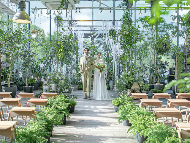 【まるで森の中!都心で叶うボタニカルチャペル】◆全天候OK!緑×自然光に包まれた木漏れ日空間◆チャペル体験でゲストとの笑顔溢れるセレモニーシーンをイメージしてみて《1件目見学で挙式料半額プレゼント》