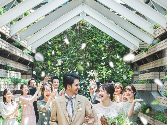 【まるで森の中!都心で叶うボタニカルチャペル】◆全天候OK!緑×自然光に包まれた木漏れ日空間◆チャペル体験でゲストとの笑顔溢れるセレモニーシーンをイメージしてみて《1件目見学で挙式料半額プレゼント》