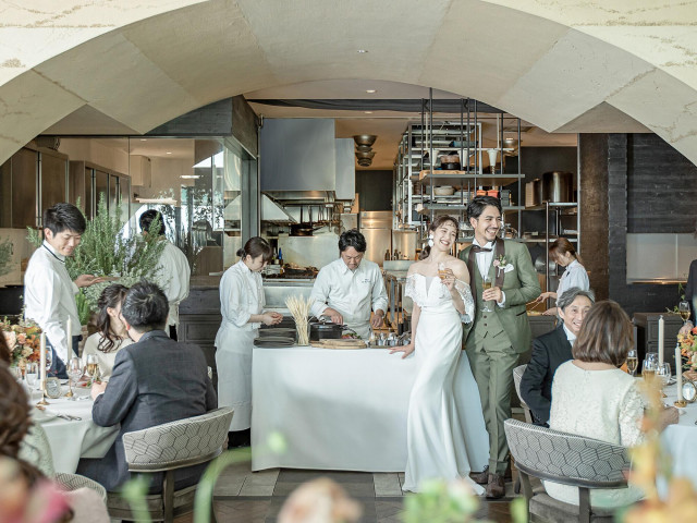 | おすすめ ポイント | 圧巻のオープンキッチンから届けられる美食とコーディネート力に特化した名駅で今話題のフォトジェニック会場。緑を望める大きな窓から自然光がたっぷりと注ぐ温かみ溢れる空間。