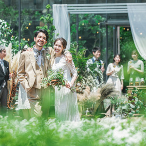 笑顔弾むガーデン挙式でゲストとの大切な時間を育むセレモニーが叶う。
