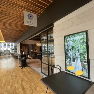 20〜30名程でアットホームなイメージを持っていたのですが、mediさんの会場は新郎新婦席からでも対角線の席でも机が遠過ぎず近過ぎずイメージと合っていました。また、新郎新婦席も自由に配置可能だったり相談に乗ってくださるので、親族や友人とも仲良くできる配慮工夫を提案してくださいます。充分すぎるかと。お肉がにやけちゃうほど美味しかったです。お肉に負けないジューシーなオマールエビや野菜たち、にんじんがあれほどまで美味しいと感じるほどです。駅から徒歩10分ほど、車なら5分、私は丁度いいと思います。テラスからの眺めも駅近の密集したビル街ではないので圧迫感もなく逆に名古屋駅なのかと思うくらい解放感があります。2件目の見学場所でしたが、ここまで熱意を感じたり、見学の私たちに沢山のおもてなしをスタッフさんやプランナーさん、シェフ皆さんでお迎えしてくださり、とても嬉しかったです。言葉だけでは伝わらないので是非行って実際にお会いしてみて欲しいです。料理がとにかく美味しい。ナチュラルなのに上品なのでカジュアル過ぎないところ。詳細を見る (458文字)