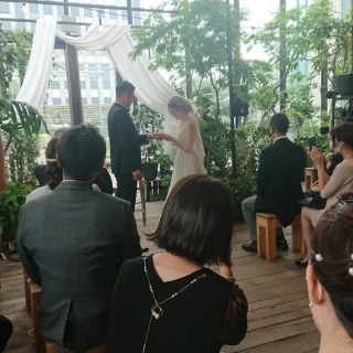 これまでに無い、チャペルぽく無い自然豊かな緑に包まれた挙式会場で、新しいと感じた。普段は観葉植物を販売しているお店なのか、観葉植物に囲まれた挙式、ガラス張りなので天気が良い時は自然光も入り非常に良かった。作りの関係上縦長となってしまっているのが残念ではあるがかなり綺麗。喫煙される方も真横で喫煙スペースがある為いいと思う。非常に美味しかった。今回は挙式、披露宴と聞いてイメージする様な型では無かった為、料理がメインという感じではなかったが、拘った演出の料理もあり、楽しめました。非常に美味しかったです。名古屋駅から徒歩でも来れる距離なので、不便さは感じなかった。近くにホテルもある為アクセスは良いと感じた。同ビル内は色々なお店がテナントで入っている為通常の利用客もいる事が非常にナチュラルな雰囲気を感じた詳細を見る (352文字)