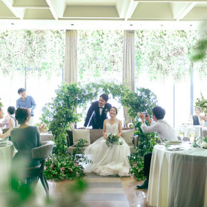 緑が沢山あり、窓も大きく晴れるととっても綺麗に陽が入ります。写真は想像している以上にとっても素敵な雰囲気になりました。いわゆる外でやるガーデン挙式と雰囲気は変わりません。それに屋根がプラスされて天候に左右されないという魅力がプラスされた空間だと感じました。参列者40名ほどでしたが、40〜60の間が丁度いい広さなのかなと感じました。窓が大きく陽が入るのでとても開放感があります。縦長会場なので途中は会場後方に椅子を用意してもらいました。そうすると後方の参列者や親族とも近くなるのでオススメです!広さは40名ほどで丁度良く感じました。テーブルを仲のいい子たちだけで細かく分けてもらったのでテーブル数は多めでした。2人席も対応していただけます。6人テーブルが多くても良ければ60名でも問題ない広さの空間だと思います。料理、装花、ムービーは上がります。衣装持ち込みも何着持ち込むかで結構負担が大きくなるかと思います。挙式会場の装花はプラス料金なしもありますが、緑をどのくらい足すかによって大きく変わります。参列者はなるべく当日来ていただける人数をしっかりと把握し見積もりを出してもらうことをオススメします!大幅に変わると割引対応も減るそうです。ペーパーアイテム系は全て持ち込みにしました。タクシーチケットも参列者全員分用意していただけます。一品ずつこだわれるのがとっても魅力的です。どういう料理にしたいかを細かく伝えなくても、エピソードを用いて見た目や演出もとても素敵なものを提案していただけます。試食会からも美味しく楽しく食べられます。当日は終わった後に出来立てを美味しくいただけます。参列者からも好評でした◎新婦側はほとんど遠方の方でしたが問題なくきていただけました。名古屋駅からも一応歩ける距離、乗り換えをしても良ければもっと近い駅もある。そしてタクシーチケットも用意していただける。駐車場もあり5台までは無料。いろんな交通手段でも問題なく来ていただけると思います。ただ迷った参列者もいたみたいで、商業施設ということと当日エレベーターを使うからということを伝えた方がスムーズだと感じました。スタッフさんはあたたかい方しかいません。担当していただいたプランナーさんはもちろん、他のスタッフの方もみなさんとってもお優しくあたたかく対応してくださります。打ち合わせ以外ではメールでも何度も何度も対応していただきました。とても有り難かったです。途中担当プランナーさんがいない時に持っていく荷物があったのですが、その際もとってもあたたかく対応していただきました。スタッフさんがとっても優しいです。あたたかい方々に囲まれて安心して式を出来ます。グリーンの挙式会場はとっても魅力的です。正直チープな印象にならないかと不安が少しありましたが、全くそんな心配いりません。天候に左右されない素敵な会場です。晴れるとグリーンウォールでリーフシャワーやバブルガンができます。取り入れてもらって大正解でした!とっても素敵な写真を残せます。お料理がとっても美味しいです。自分たちでこだわれるし、素敵な提案もしていただけます。提案していただいた食べ比べゲームは想像以上に盛り上がり好評でした!ブーケにこだわったのですが、とっても素敵なブーケを作っていただきました!会場を移動しても常に持っていたので写真にも映えます◎どうしても後半に用意したいことが増えていきます。使いたいなと思っていたペーパーアイテムのイメージはなるべく早めに用意して正解でした。変えたい思う場合もあるのでいつでも印刷できる用意だけしておくと安心です。値段が上がるにはやはり上がるだけの理由があります。挙げて思ったことは支払った金額以上の満足感を得られます。どこにお金をかけるか、時間をかけるか、こだわるか、夫婦間で明確にしておくと問題ないです◎プランナーさんからも提案をしていただけます!詳細を見る (1614文字)