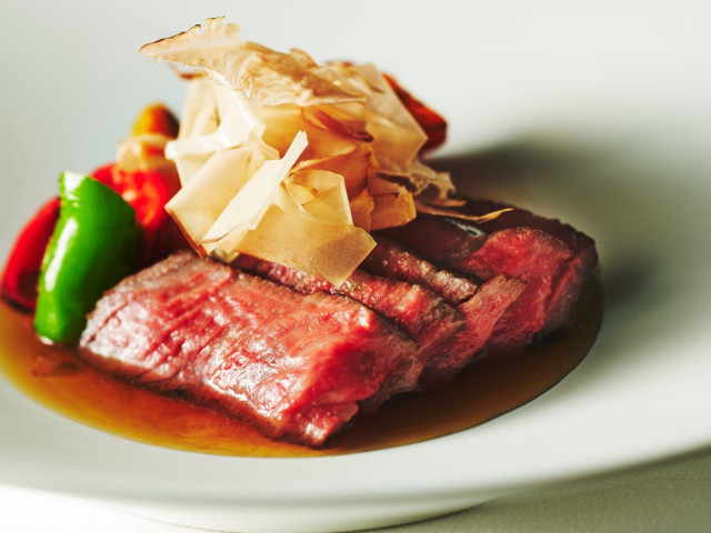 【日本食×フレンチ】日本食の礎を為す『出汁』をベースに、フレンチの技法を随所に取り入れた明神ガストロノミー。フェアでは婚礼コースから3品をご提供。美食家から幻の肉と称される『東京ビーフ』を是非堪能して