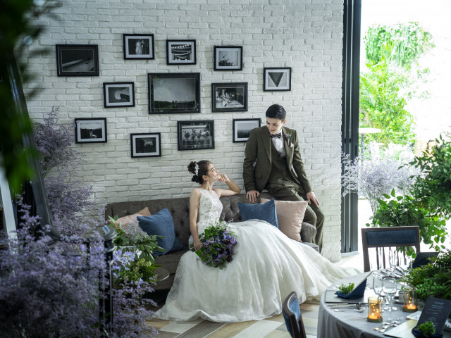 隣接しているホワイエでゲストへウェルカムドリンクや一緒にくつろぐフォトスペースとして自由な時間を