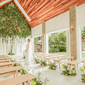 天井が広く、自然光がしっかり入ってきて明るく、主役が輝きそうな会場でした。真っ白で洗練された感じもあり、緑もあり、挙式会場からもテラスが見えて、凄く綺麗で素敵でした。木でできた別荘のようで、外にある庭や緑も見えるし、窓は全開できるし、本当にどんな形にもなれる会場でした。天神ですが静かでした。駅から歩いて行ける距離で行きやすいし、帰りに天神で買い物も出来そうです。スタッフさんがとても親身で、質問にはご丁寧に答えてくださり、とてもみなさん素敵でした。アットホームな感じで、結婚式をあげる中でしたいことが沢山あったりこだわりが沢山ある方はオススメです。自分達のしたいスタイルを定めておくと凄くイメージしやすいと思います詳細を見る (308文字)