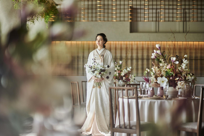 洗練された館内のインテリアや鴨川沿いの京都の景色には、雅やかな和のスタイルもよく映えます。季節感を取り入れたり、大人の魅力を表現したり…和スタイルならではのアレンジを、衣裳はもちろん、装花やテーブルコーディネートでお楽しみください。