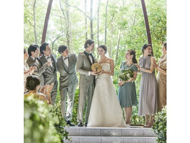 【緑と光の人気チャペル体験】天井高10M、木の温もりと緑溢れるチャペルは、高原リゾートの教会のよう。隣接したガーデンで行うアフターセレモニーも人気♪《2月BIG特典:挙式料全額プレゼント》