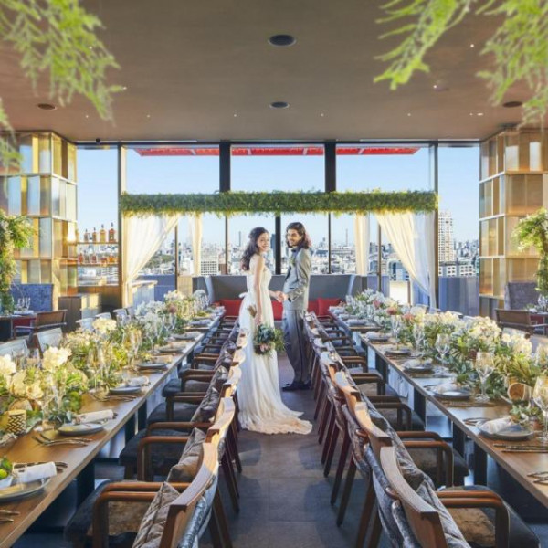 ルーフトップファンに大人気の会場を貸切に。全天候型のテラスでもパーティーが可能。海外のように、オシャレに、花嫁の夢を叶える新会場が渋谷駅直結で誕生。海外ウエディングの自由度を体験いただけます!