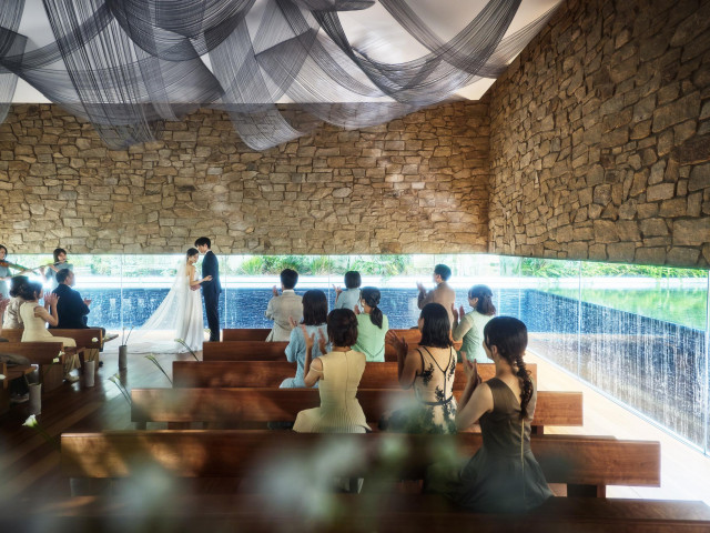 | おすすめ ポイント | 3面の窓の外に優しく流れる滝と、まるで浮かんでいるような石壁が印象的なチャペル |
