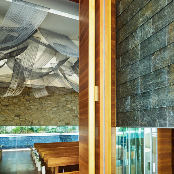 | おすすめ ポイント | 3面の窓の外に優しく流れる滝と、まるで浮かんでいるような石壁が印象的なチャペル |