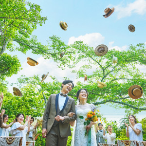広がる青空と澄んだ空気、心地よい緑が気持ち良いガーデン挙式