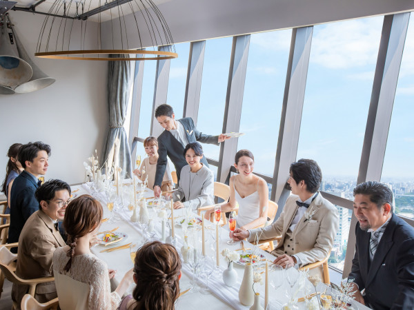 名古屋テレビ塔の頂上の展望フロアは宿泊者限定の貸切ルーフトップバー完備。結婚式後に大切なゲストと共に、1日の余韻に浸りながら夜景をながめることができる。