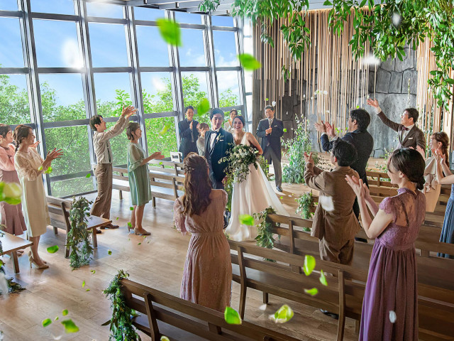 【チャペルアワード連続受賞】木・石・緑が織りなす眺望チャペル。大きな窓からは祝福の自然光が注ぎ、荘厳な音色が響き渡る空間で感動の挙式体験をしていただけます。《1件目見学限定:挙式料全額プレゼント》